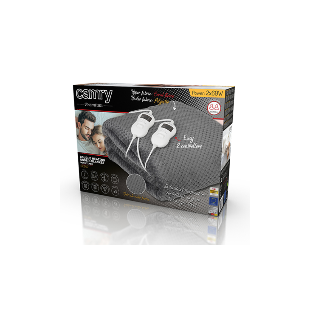 Električni pokrivač Camry pruža vam opuštajuću toplinu i udobnost. Električni pokrivač umiruje neuralgije, pomaže vam da opustite mišiće i poboljšava cirkulaciju krvi. Preporučuje se za lečenje simptoma artritisa i reumatizma. Omogućava vam brzu i ravnomernu raspodelu toplote. Prekrivač je napravljen od meke i nežne tkanine.