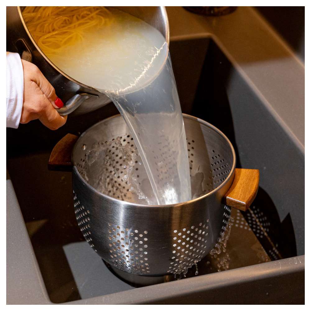 Drvo na drškama nudi otpornost na habanje, dok u kombinaciji sa bojom slonovače daje luksuzan osećaj vašem kuvanju. Idealni za svakodnevno kuvanje, ovi alati su dizajnirani da svaki proces učine udobnijim i elegantnijim, nudeći prirodan dodir vašoj kuhinji. Pripremljenu testeninu ocedite veoma brzo i obradujte vašu porodicu sa ukusnim obrokom.