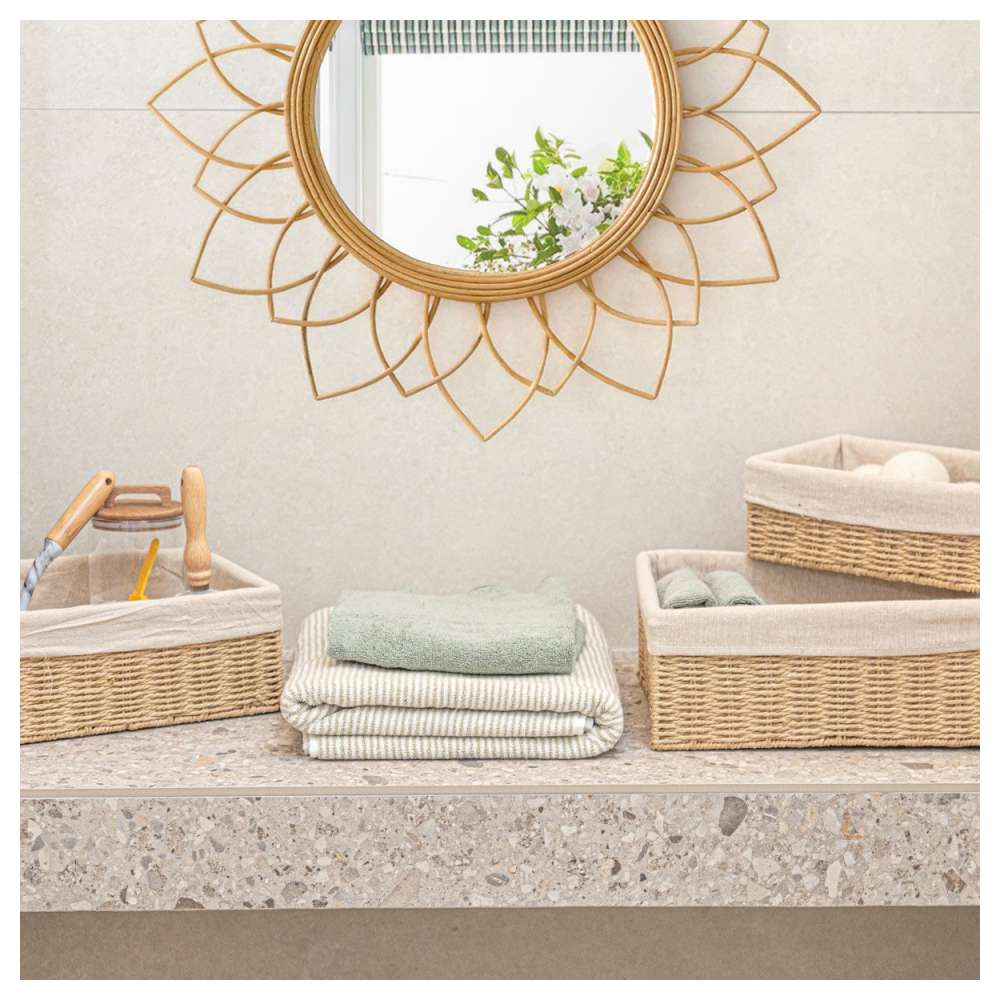 Nova višenamenska korpa pomaže da se sitnice dobro organizuju u kupatilu. Daje prostoru svež, prirodan dodir. Korpa je izrađena od materijala Paper Rope, koji je kombinacija izdržljivost sa prirodnim stilom. Proizvodi u asortimanu takođe imaju uklonjivu unutarnju podstavu za jednostavno čišćenje. Stavite sve što treba u višenamensku korpu i uvek će vam biti pri ruci.