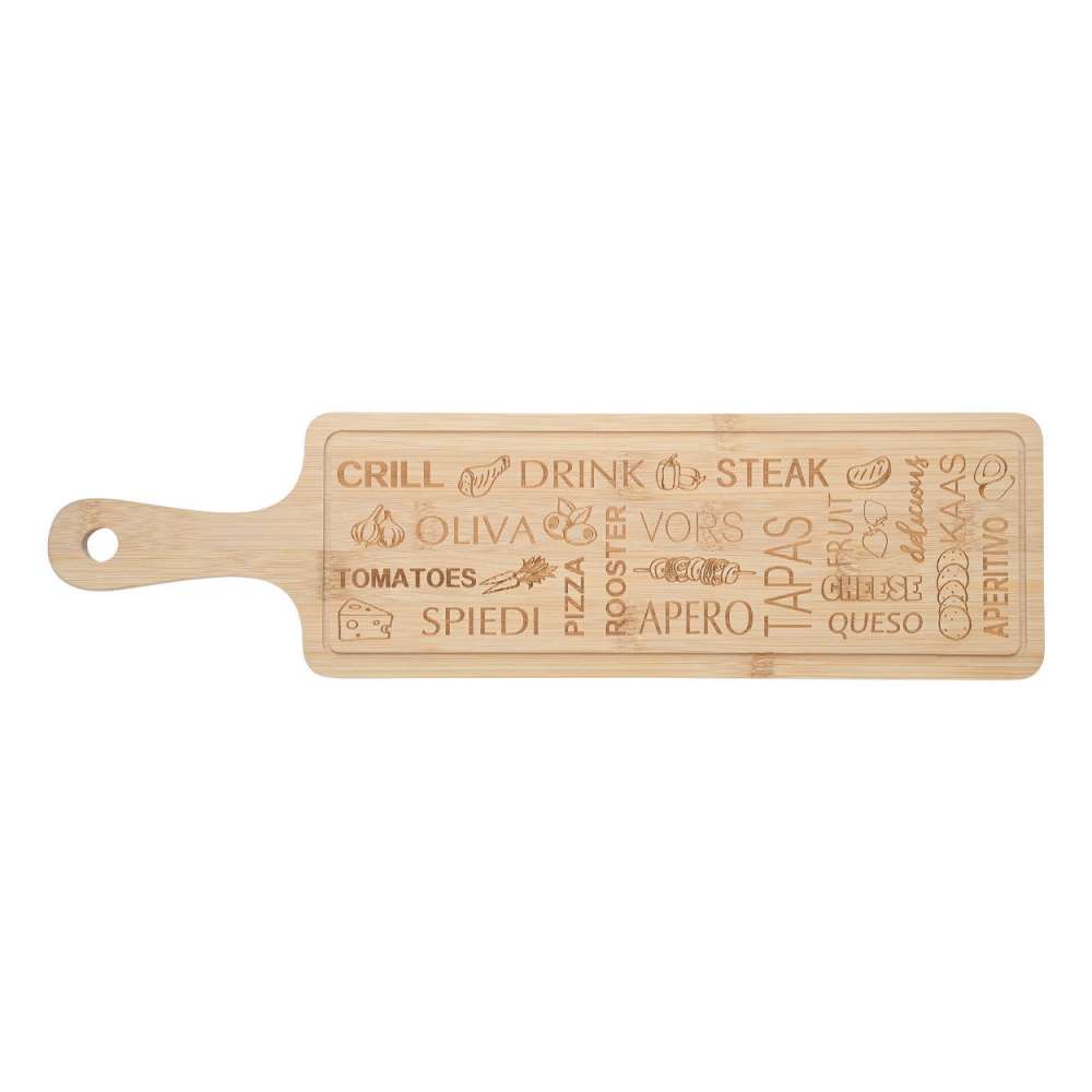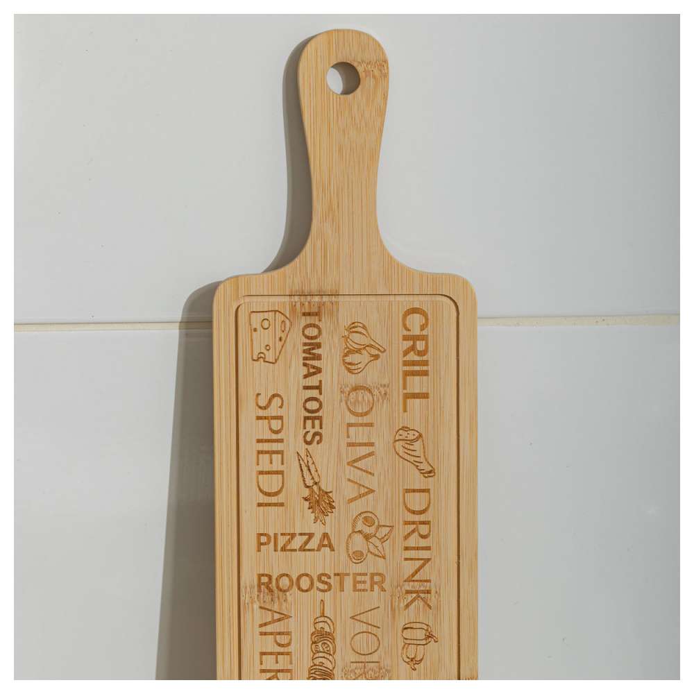 Daska za sečenje I serviranje napravljena je od bambusovog drveta, izdržljivog i prirodnog materijala koji je otporan na vlagu. Ploče nisu podložne oštećenjima i ne tupe noževe kada se na njima seče. Veoma je interesantnog oblika pa se može koristiti za serviranje. Savršeno je i za sečenje svih prehrambenih proizvoda.