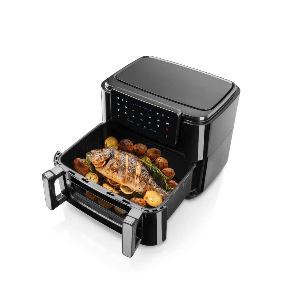 Uz HAEGER HEAF-D10.010A digitalnu fritezu bez ulja, vaša jela će dostici novi I viši nivo. Zahvaljujući 10 programa kuvanja i tehnologiji vrućeg vazduha od 360°, možete pripremiti sve, od hrskavog krompira do sočnih mesnih jela, bez potrebe za dodavanjem ulja. Digitalna kontrola sa ekranom osetljivim na dodir čini podešavanje vremena i temperature izuzetno jednostavnim, omogućavajući vam da temperaturu prilagodite između 80º i 200º, idealno za različite vrste hrane.