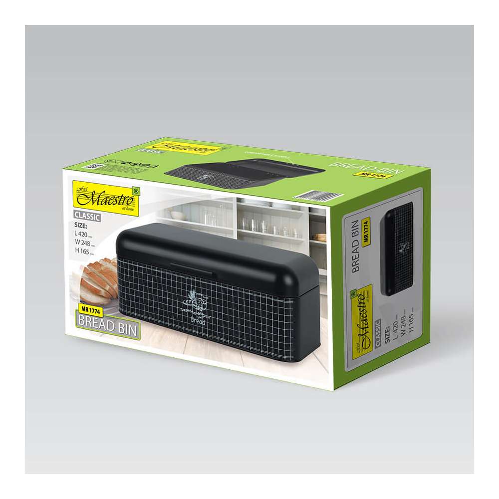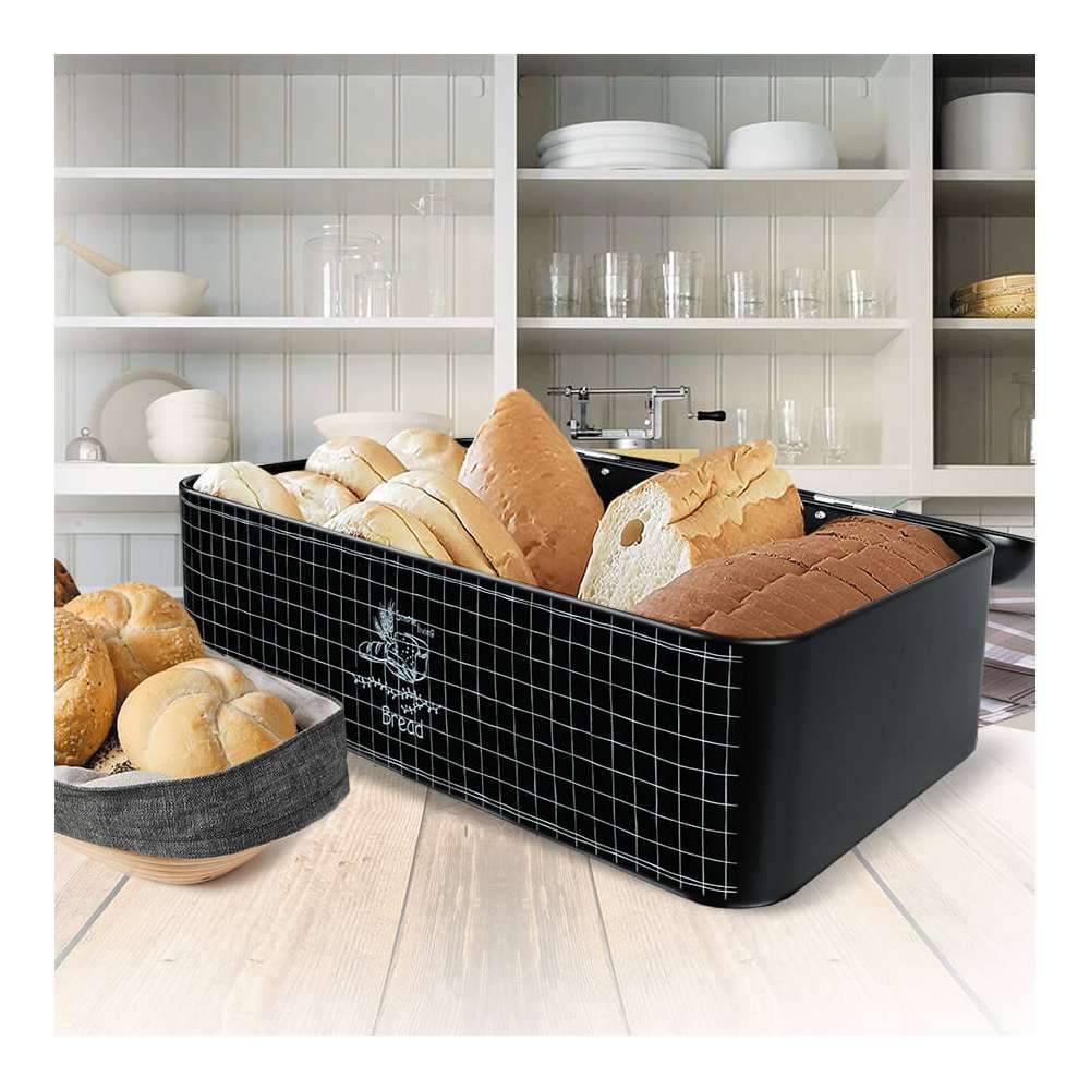 MAESTRO MR1776 KUTIJA ZA HLEB 34.5x23.5x13CM CRNA MR1776 Kutija za hleb dimenzija 34,5x23,5x13 cm nije samo moderna kutija za hleb, već je i funkcionalna. Kutija