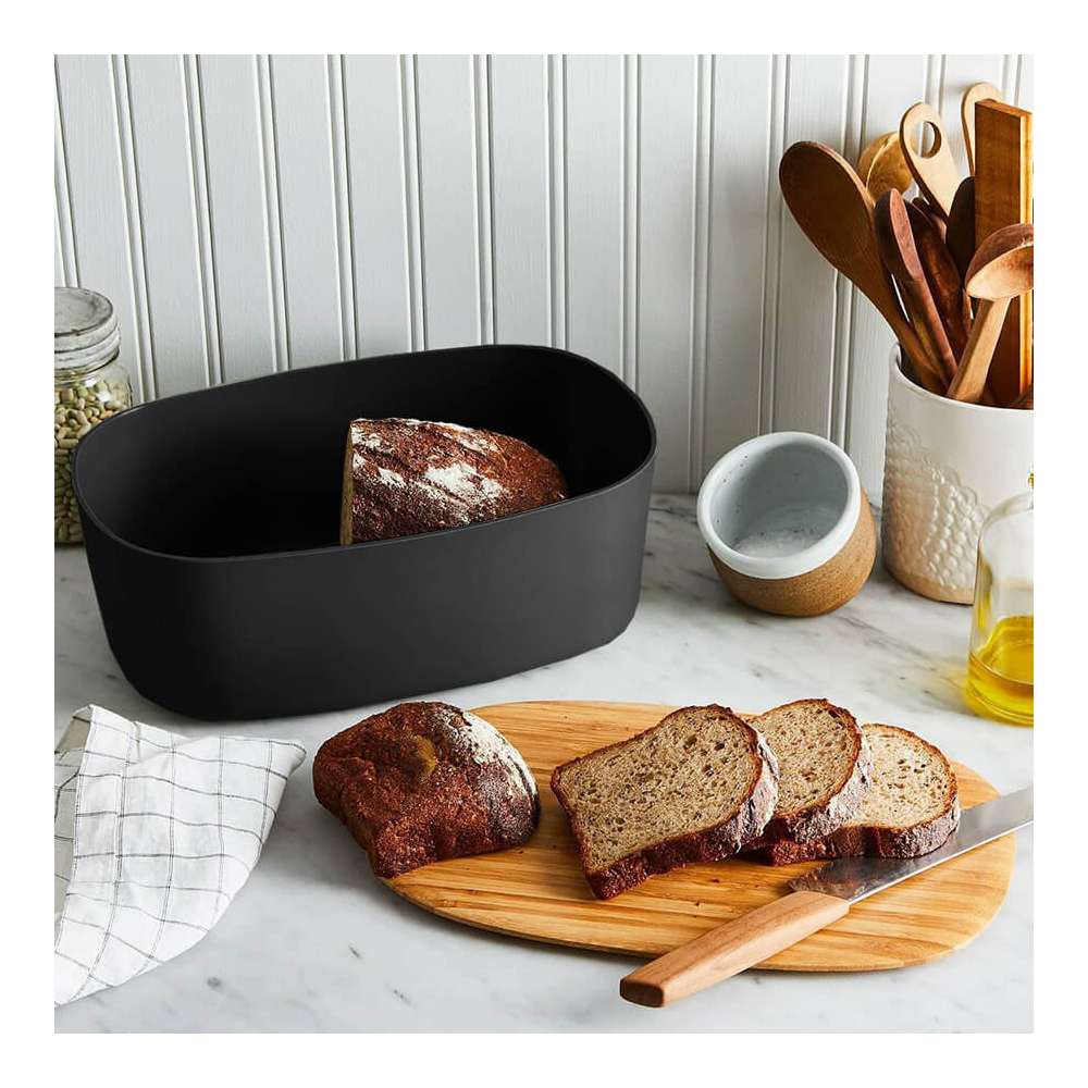 MR1776 Kutija za hleb dimenzija 34,5x23,5x13 cm nije samo moderna kutija za hleb, već je i funkcionalna. Kutija je napravljena od visokokvalitetnog materijala i dugo traje. Boja je crna i lako se uklapa sa ostatkom nameštaja i posudja. Korišćenjem kutije vaš hleb i pecivo će zadržati svežinu duže nego inače. Ekološki je čist materijal.