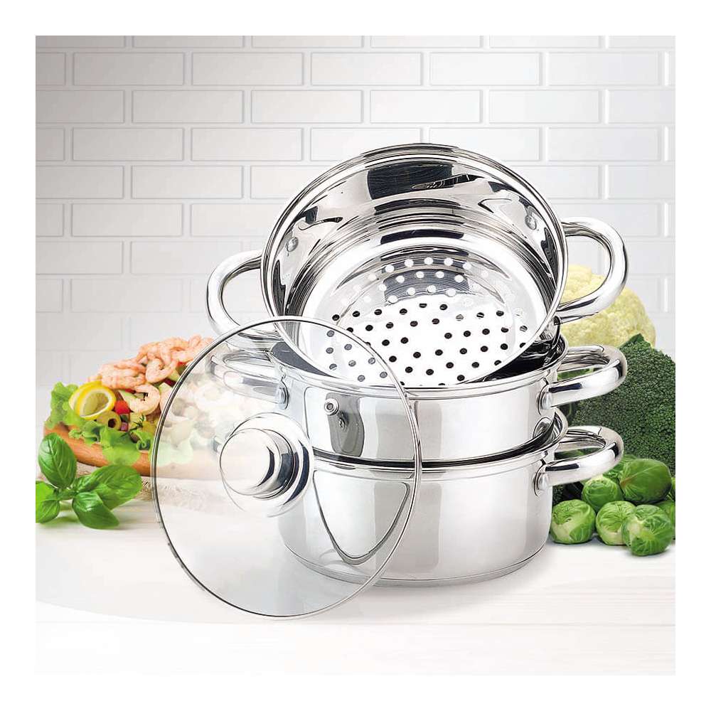 MR2900 - 18 lonac za kuvanje je posebno kreiran lonac na četiri nivoa koji omogućava kuvanje različite hrane na pari. Lonac je izradjen od visoko-kvalitetnog nerdjajućeg čelika, sa višeslojinim dnom koje dobro akumulira toplotu. Ručke su izradjene od plastike, koja ostaje hladna čime se povećava bezbednost i udobnost upotrebe lonca. Pogodan je za upotrebu na svim vrstama šporeta.