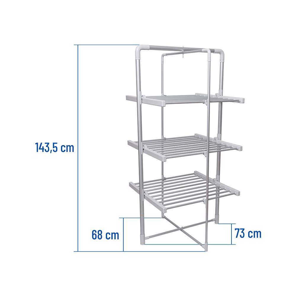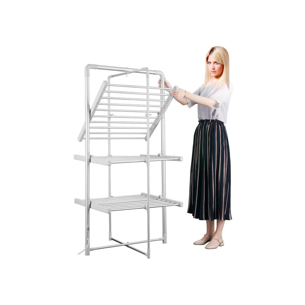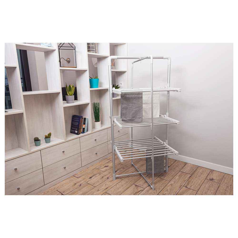 Električni sušač veša ECD50 je savršeno rešenje za svaki dom. Uređaj će brzo i efikasno osušiti veš, bez obzira na sezonu ili vreme. Može se koristiti i kao tradicionalni sušač – bez struje. Model ECD50 je opremljen sa 3 nivoa za kačenje veša i plastičnim nogicama koje štite pod od ogrebotina. Uređaj se može sklopiti u kompaktnu veličinu, što ga čini lakim za nošenje i skladištenje.
