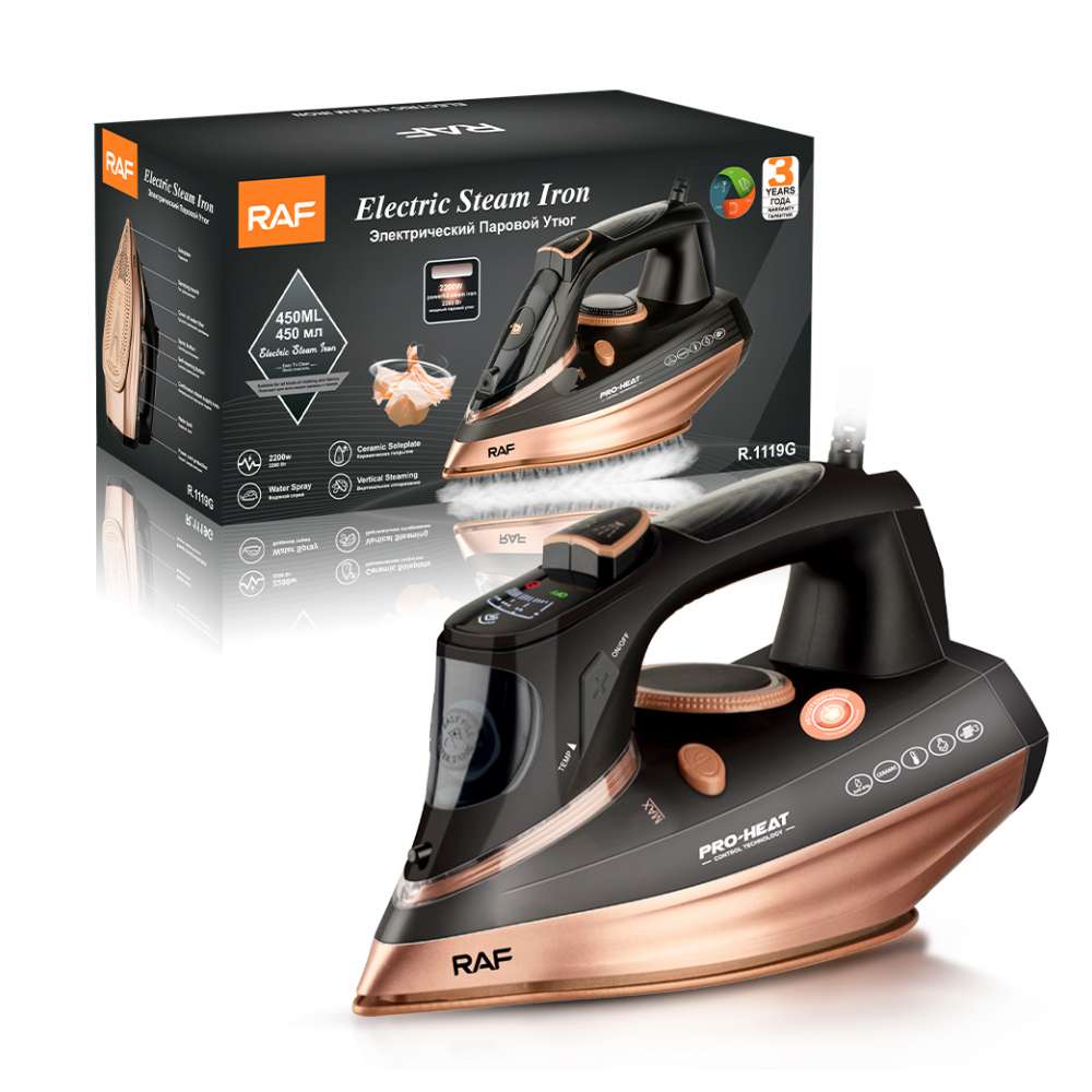 RAF R.1195G PEGLA NA PARU 2200-2600W Pegla R.1195G omogućava pouzdano i efikasno peglanje uz snagu od 2200 W. Rezervoar od 450 ml obezbeđuje duže peglanje bez...