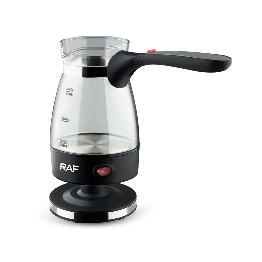 RAF R.128 ELEKTRIČNA DŽEZVA STAKLENA SA SKLOPIVOM RUČKOM CRNA 0.5L Ova moderna staklena džezva omogućava brzo i praktično zagrevanje vode, idealno za pripremu...