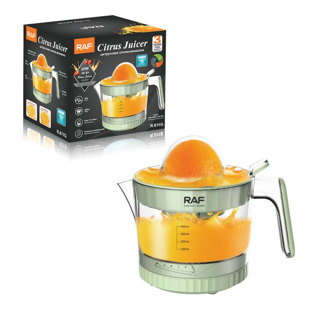 RAF R.611G CITRUS CEDILJKA Citrus cediljka R.611G omogućava brzo i jednostavno cedjenje svežeg voća za pripremu soka. Snaga od 30 W je dovoljna za efikasno dobijanje...